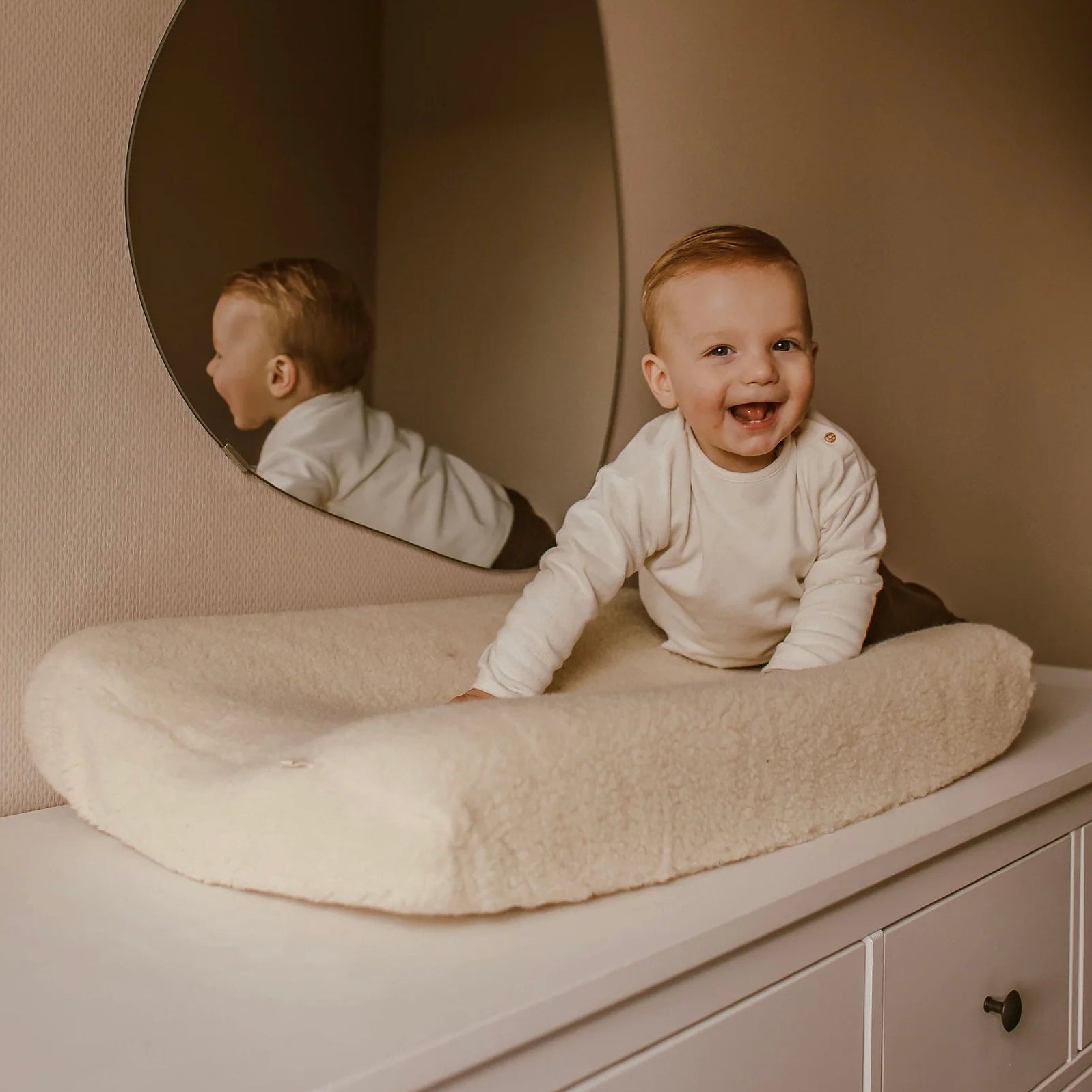 Ervaar ultieme zachtheid en comfort voor je kleintje met onze 100% merinowollen aankleedkussenhoes. Dankzij zijn natuurlijke eigenschappen voelt de wollen hoes heerlijk zacht aan op de gevoelige huid van je baby, waardoor elk verschoningsmoment net wat meer een moment van comfort wordt.
