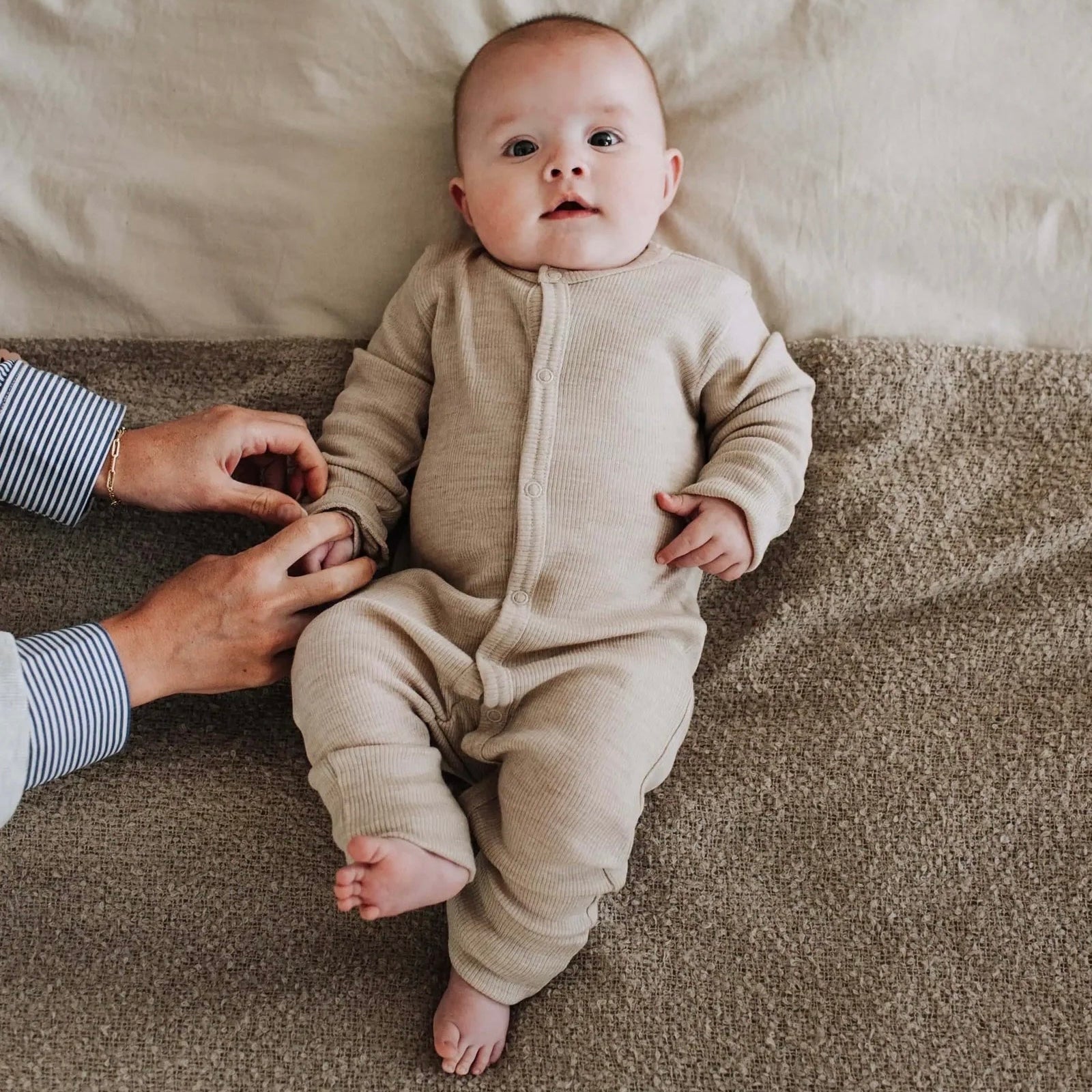 Ons knusse wollen boxpakje met voetjes houdt je baby warm en comfortabel, van top tot teen. Het zachte materiaal voelt heerlijk aan op de huid, terwijl de voetjes van het boxpakje ervoor zorgen dat de voetjes van je kleintje altijd beschermd en warm blijven.