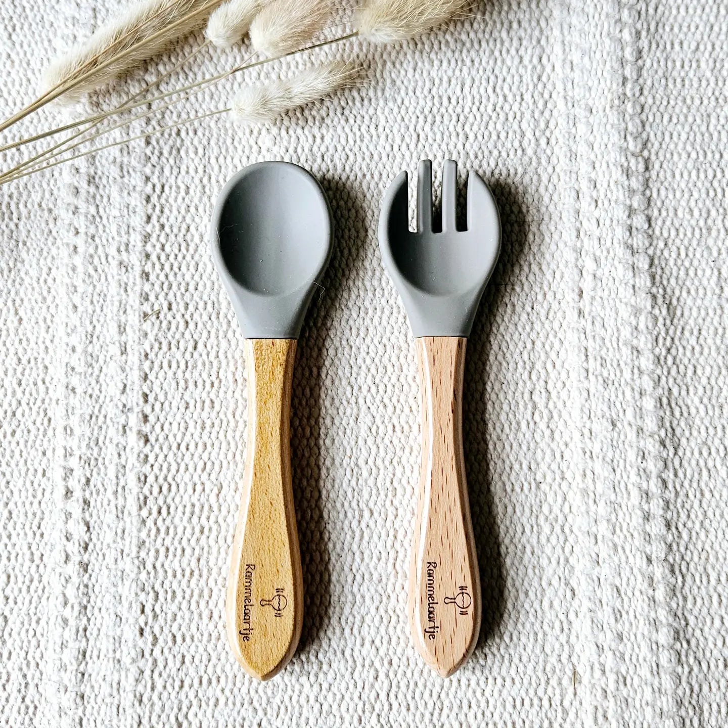 Cuillère et fourchette avec manche en bambou | Sonnettes pour bébé
