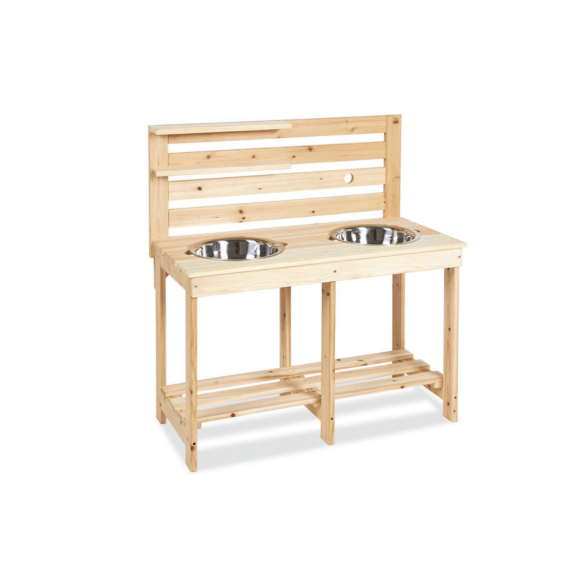 Deze stevige massief houten modderkeuken is dé plek waar kleine chefs zich helemaal kunnen uitleven met zand, water en natuur. Gemaakt van onbehandeld sparrenhout, klaar om zelf te behandelen of in natuurlijke look te gebruiken.
