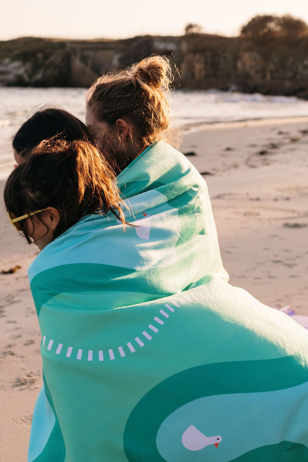 Gemaakt van zachte, sneldrogende microvezel, is deze handdoek niet alleen compact en licht, maar ook uiterst praktisch in gebruik. Dankzij de handige ophanglus is hij snel op te hangen én op te bergen. De maat Medium is bovendien voorzien van drukknopen, zodat kinderen de handdoek kunnen dragen als een cape – ideaal voor kleine superhelden!