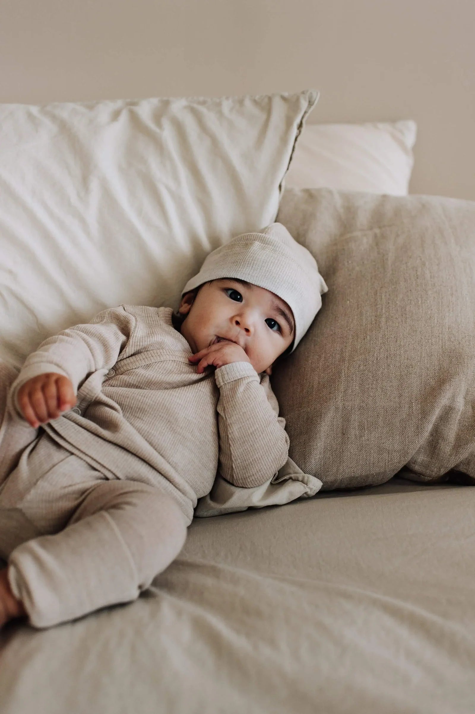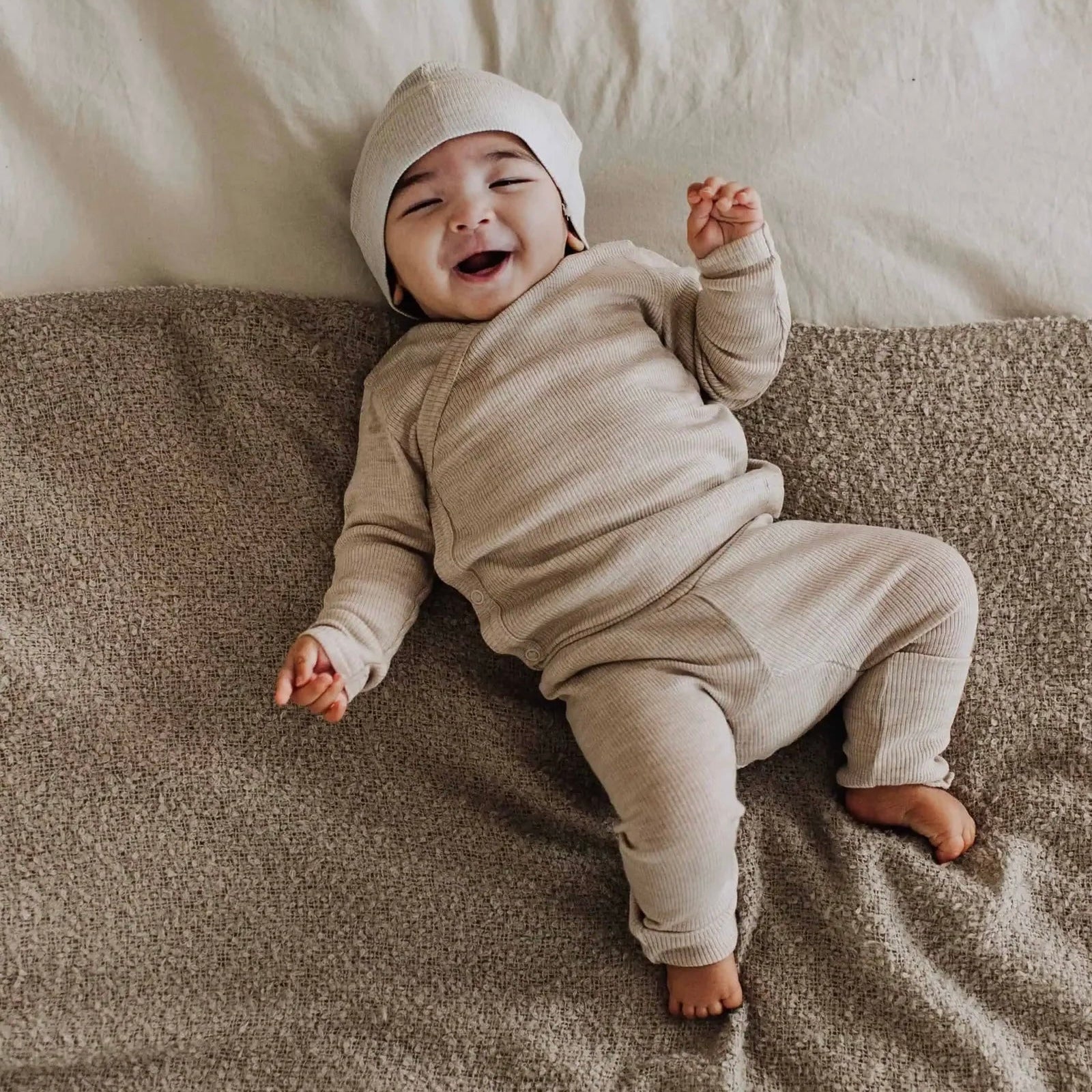 De muts is perfect voor elke gelegenheid, of het nu een wandeling is op een frisse dag of gewoon om je kleintje lekker knus thuis te houden. Een onmisbaar wollen item voor ouders die hun newborn het beste willen bieden.
