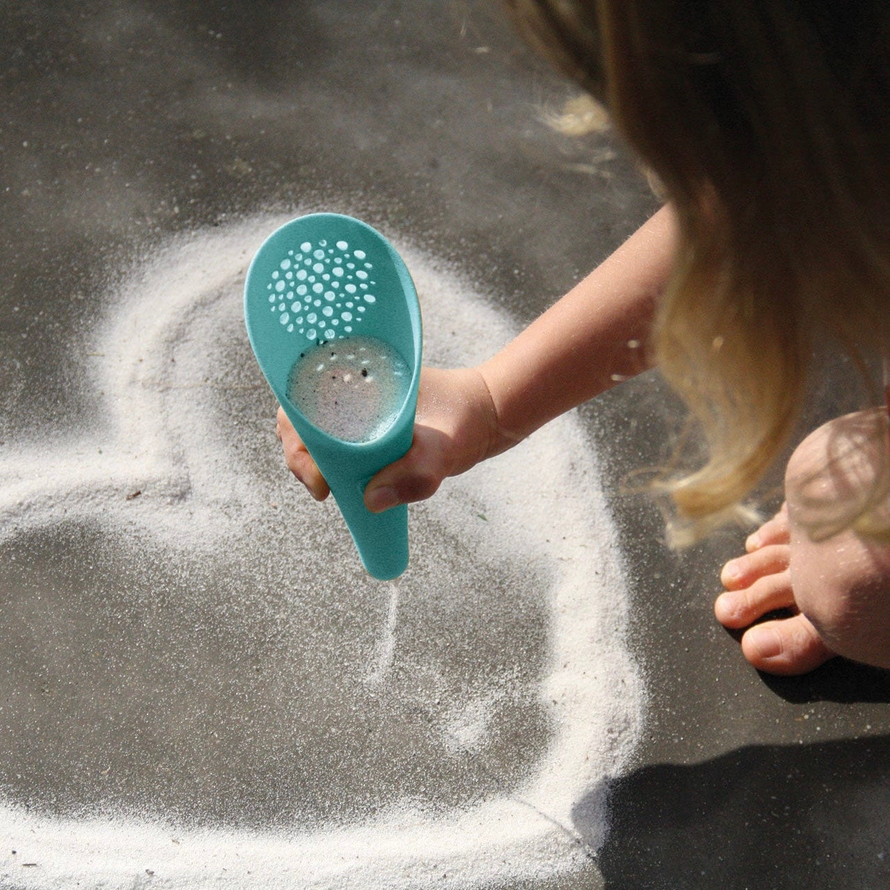 Gebruik het schepje om zand te scheppen en banen te maken om de bal te rollen of gebruik het uniek ontworpen gat om te schrijven of patronen te maken met zand en water.