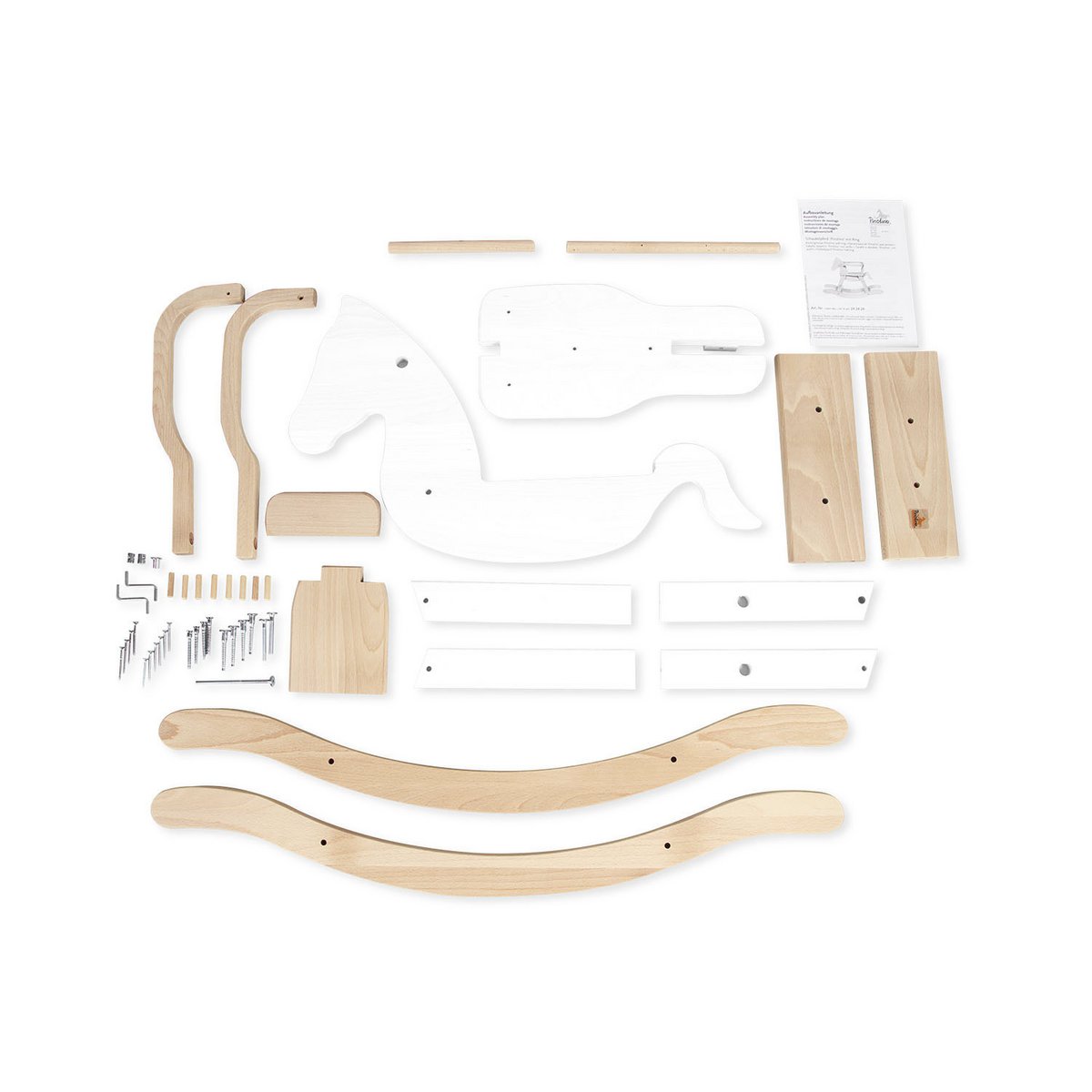Een echte klassieker in een modern jasje! Dit prachtige massief beukenhouten hobbelpaard is wit gelakt met natuurlijke accenten en ontworpen met oog voor veiligheid, duurzaamheid en stijl.
