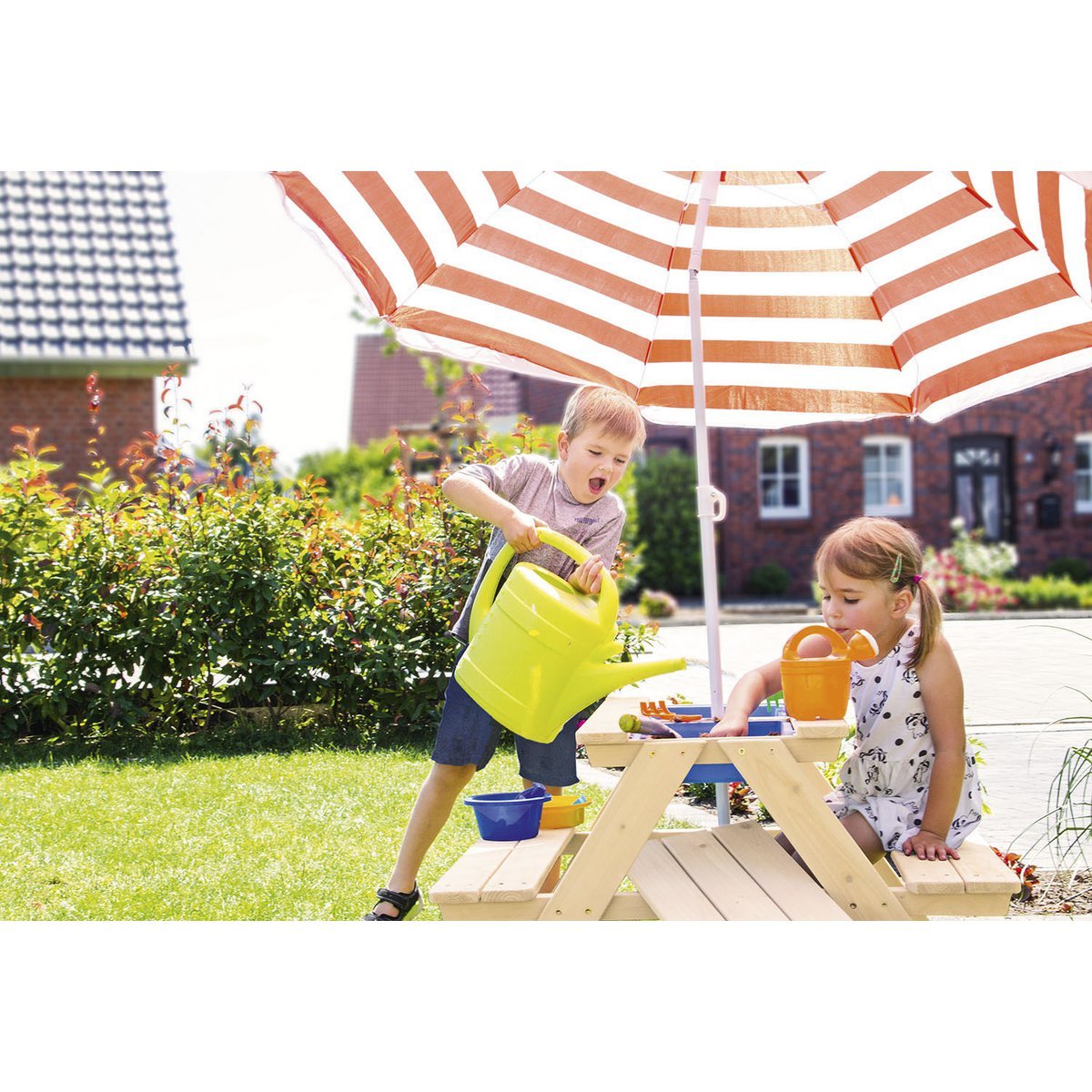 Laat kinderen spelen, ontdekken en knutselen aan deze veelzijdige kinderpicknicktafel van massief naaldhout.