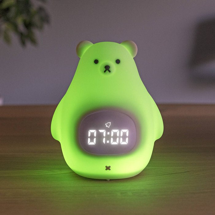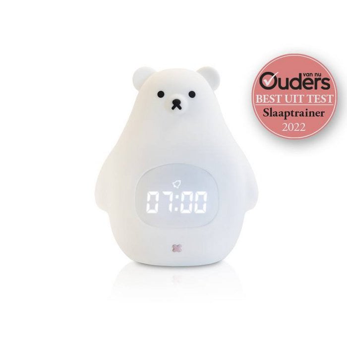 Onze slaaptrainer is ideaal om je kleintje al vroeg te leren wanneer het nog geen tijd is om op te staan. Dit doe je door de slaaptrainer functie in te stellen op de gewenste tijd. Het lampje zal dan vanaf een half uurtje voor de ingestelde tijd gaan branden(geel) ten teken dat het bijna tijd is om op te staan. Op de ingestelde tijd veranderd de kleur naar groen ten teken dat je kindje uit bed kan komen.