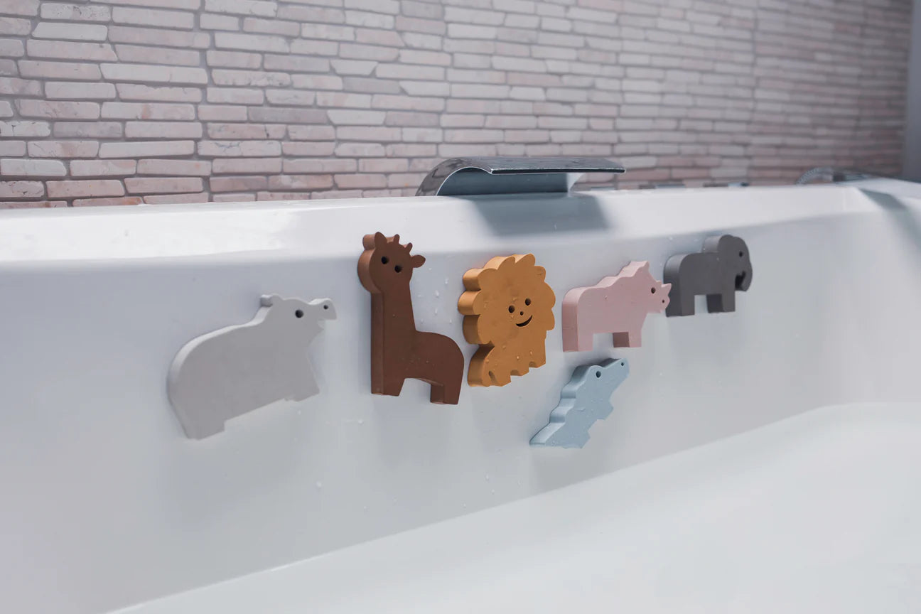 Met deze leuke Waterfun safari set die bestaat uit herkenbare dieren van op safari beleven kinderen de leukste avonturen in bad, douche, zwembad,... . Neem deze vrienden mee op de leukste avonturen, zowel in en uit het water. De diertjes kunnen blijven plakken aan de bad - of douchewand , je kan een vlot bouwen door de figuurtjes op elkaar te stapelen en nog veel meer met deze unieke Waterfun safari set van MOES. Deze zijn eveneens superleuk om mee te nemen naar het strand!