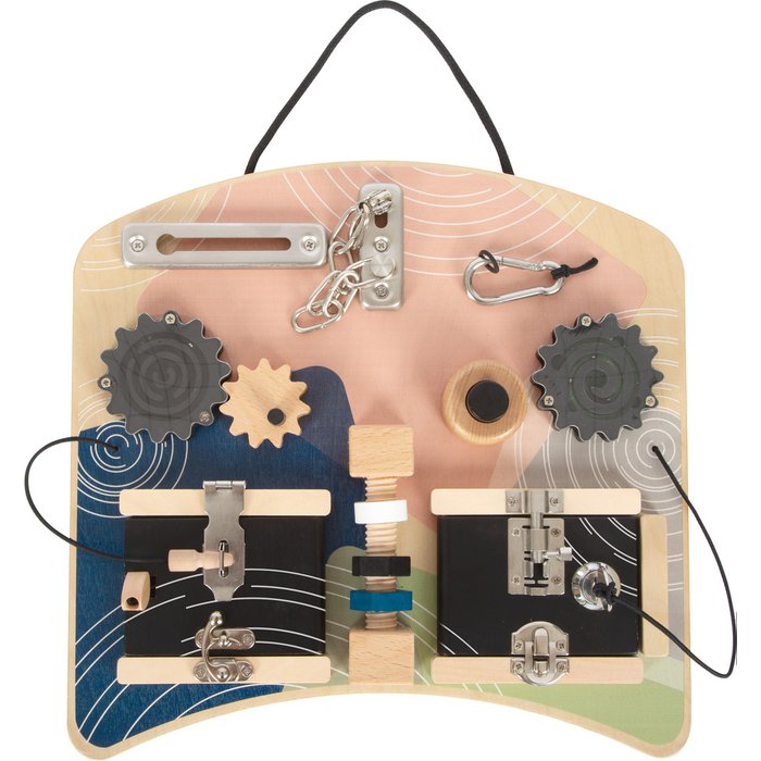 Dit stevige houten leerbord zit boordevol uitdagende motoriekactiviteiten die perfect zijn voor nieuwsgierige kinderhandjes. In moderne, trendy kleuren én met veel natuurlijk hout is het een echte blikvanger én leerzaam speelgoed in één.