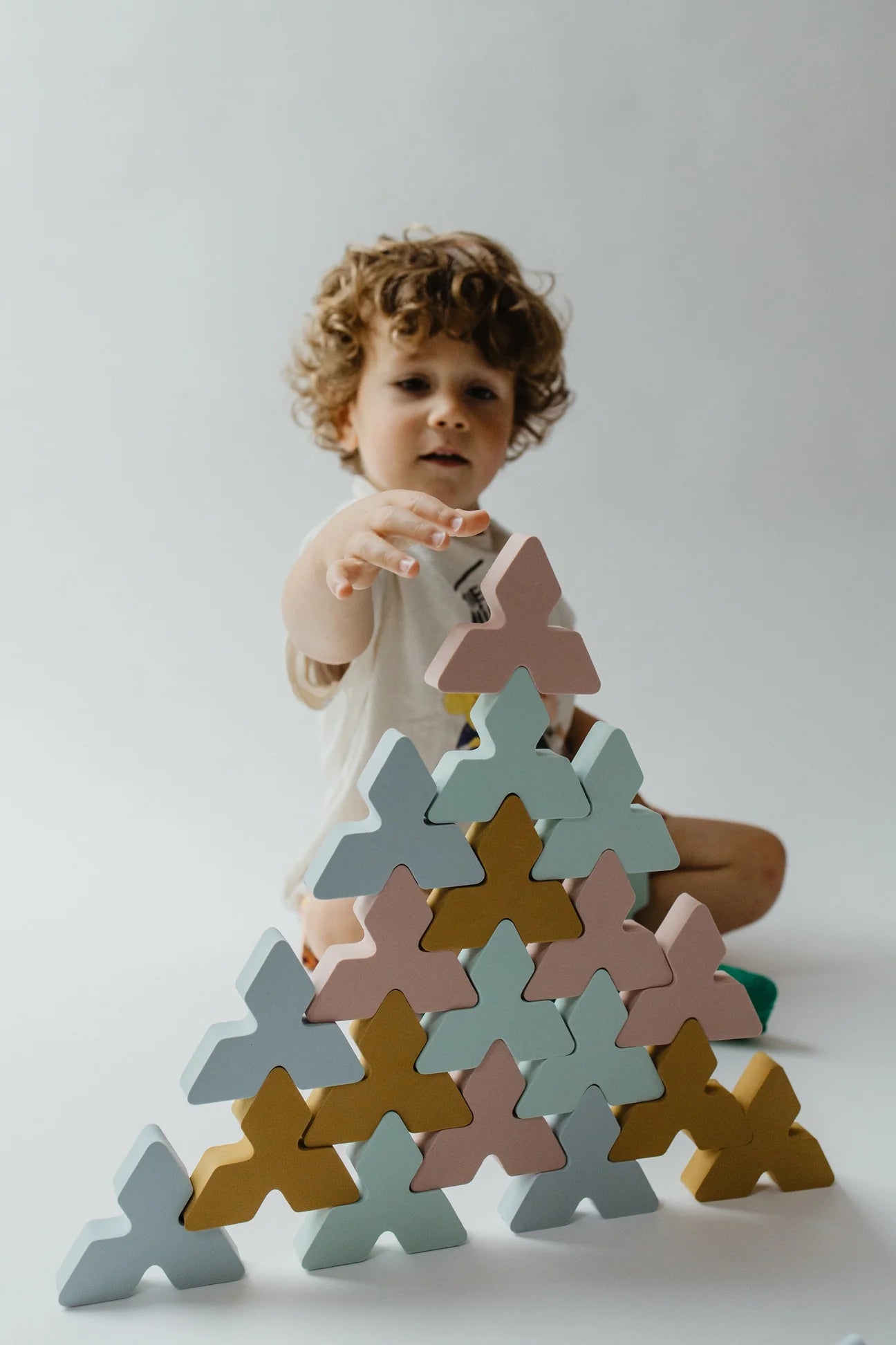 De Trianglo set is een creatieve blokkenset bestaande uit unieke driehoekige vormen, ontworpen om bouwen, puzzelen en stapelen te bevorderen. Deze set stimuleert niet alleen de hand-oogcoördinatie en fijne motoriek, maar moedigt ook creativiteit aan, waardoor kinderen op een speelse manier hun ruimtelijk inzicht ontwikkelen.