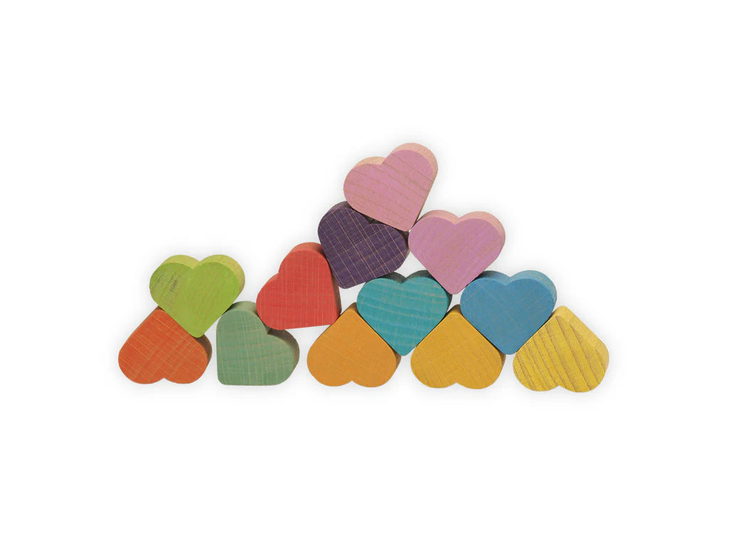 Een betoverende serie van 12 houten figuren in de vorm van sterren, hartjes of de maan, verkrijgbaar in naturel of kleurrijke varianten. De eenvoudige, organische vormen prikkelen de verbeelding en nodigen uit tot vrij spel, sorteren, rollen, stapelen of gewoon om eindeloos te bewonderen.