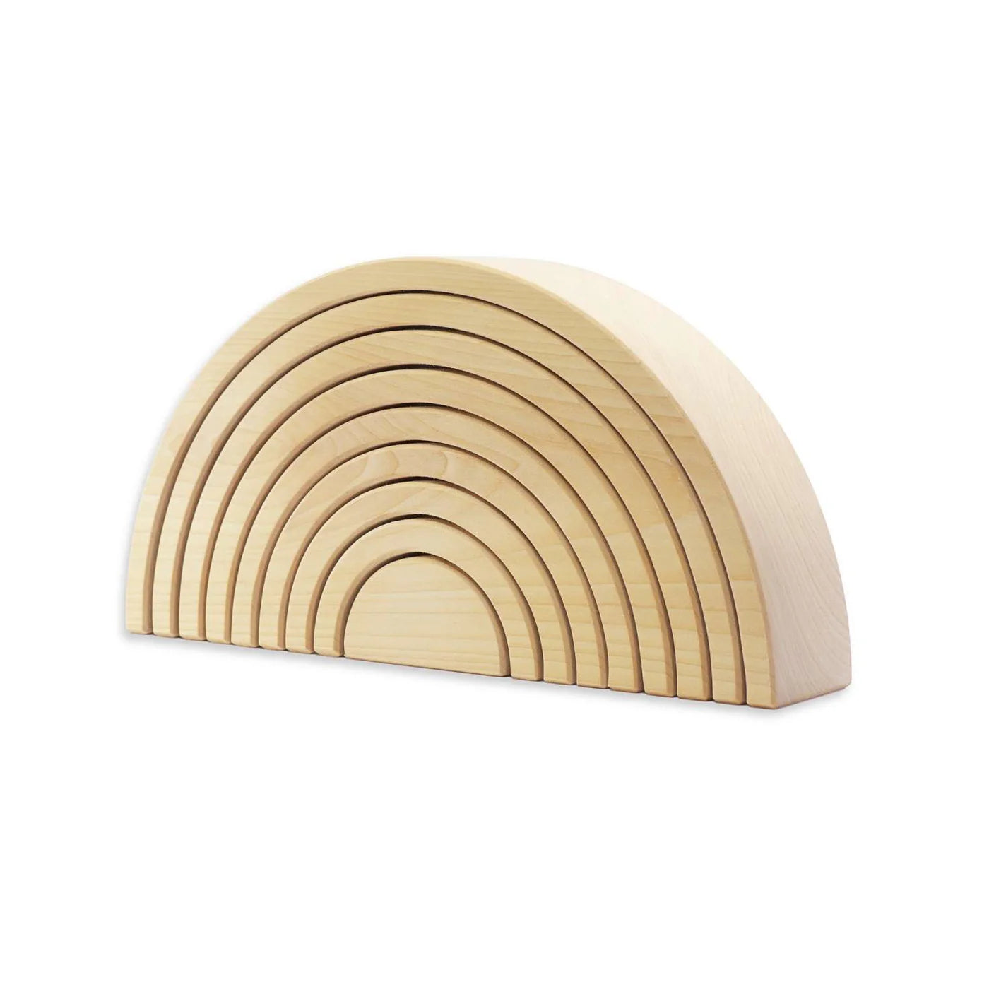 Deze prachtige naturel regenboog bestaat uit 9 houten bogen en is één van de meest veelzijdige en duurzame speelobjecten voor kinderen. Elk element nodigt uit tot vrij spel en groeit mee met de ontwikkeling van je kind.