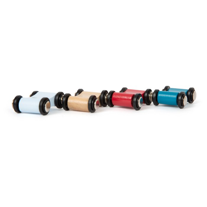 Deze stijlvolle houten racebaan zorgt voor eindeloos speelplezier. De vier houten autootjes suizen razendsnel van verdieping naar verdieping, maken vrolijke salto’s en zorgen voor een spektakel van beweging en geluid.