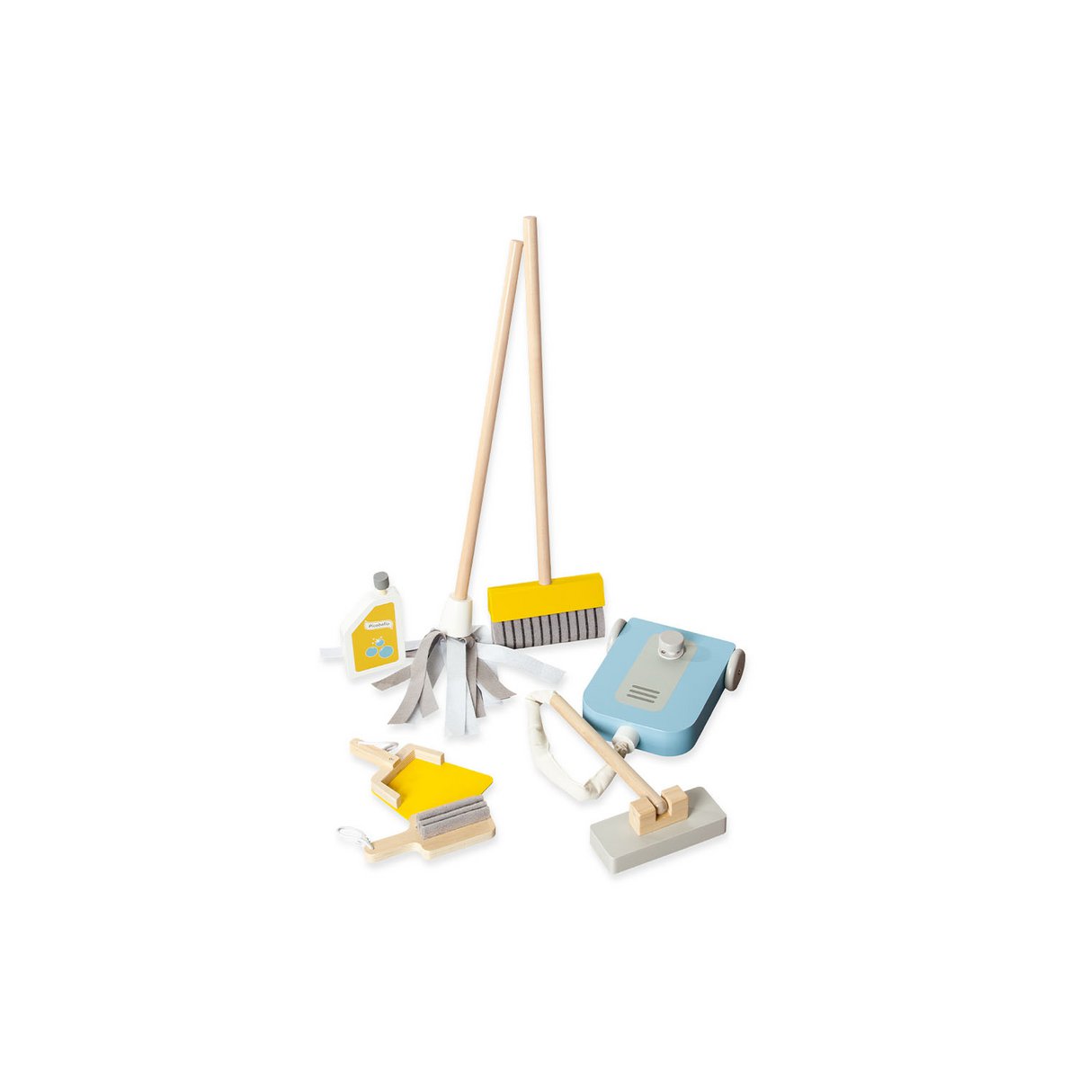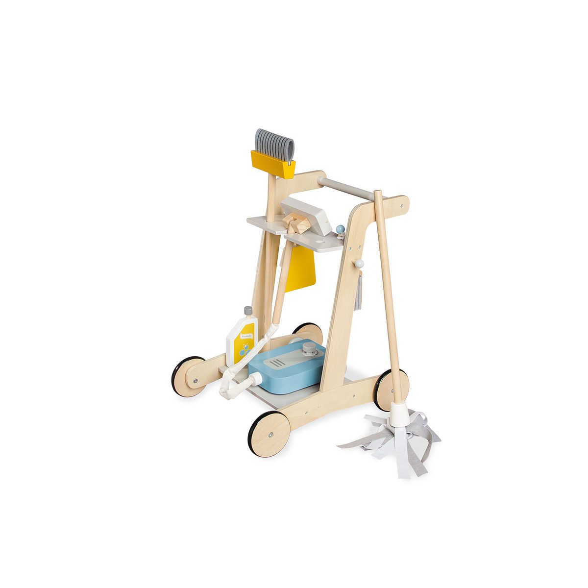 De set bestaat uit 7 onderdelen: de schoonmaakwagen en zes leuke accessoires, waarmee je kind zich een echte poetshulp voelt. Ideaal voor rollenspel, motorische ontwikkeling en een vleugje fantasie!