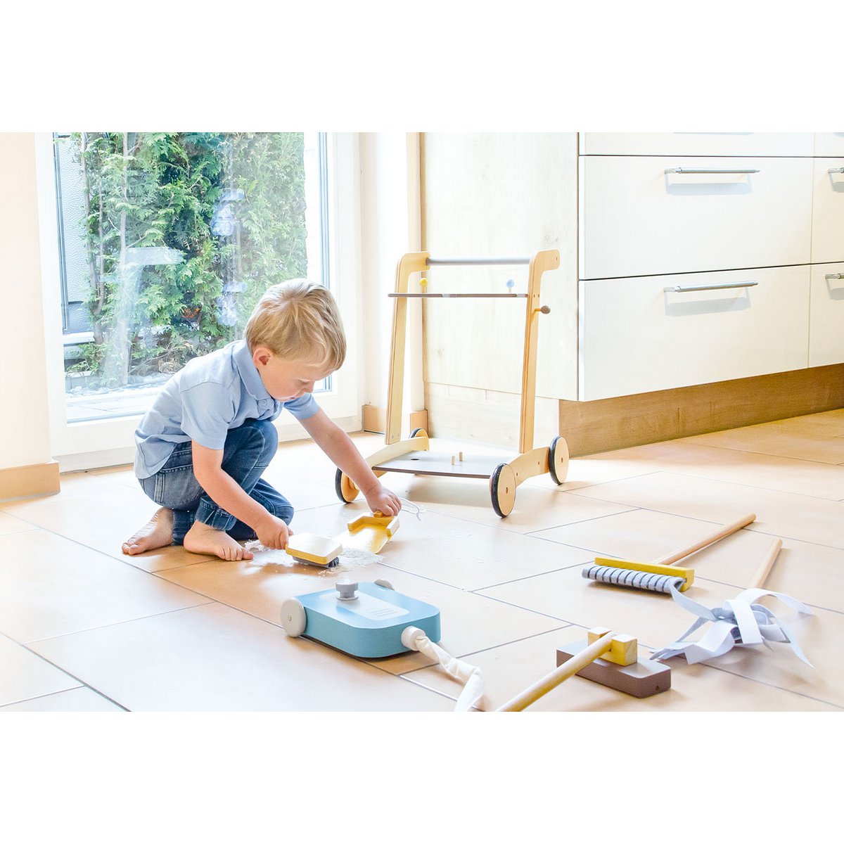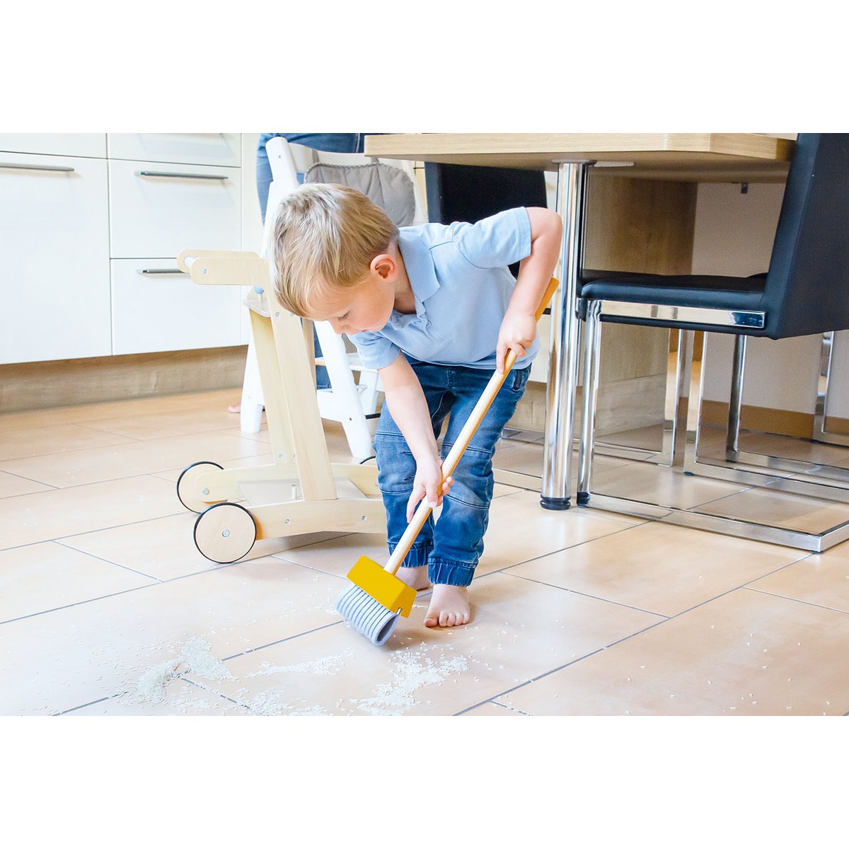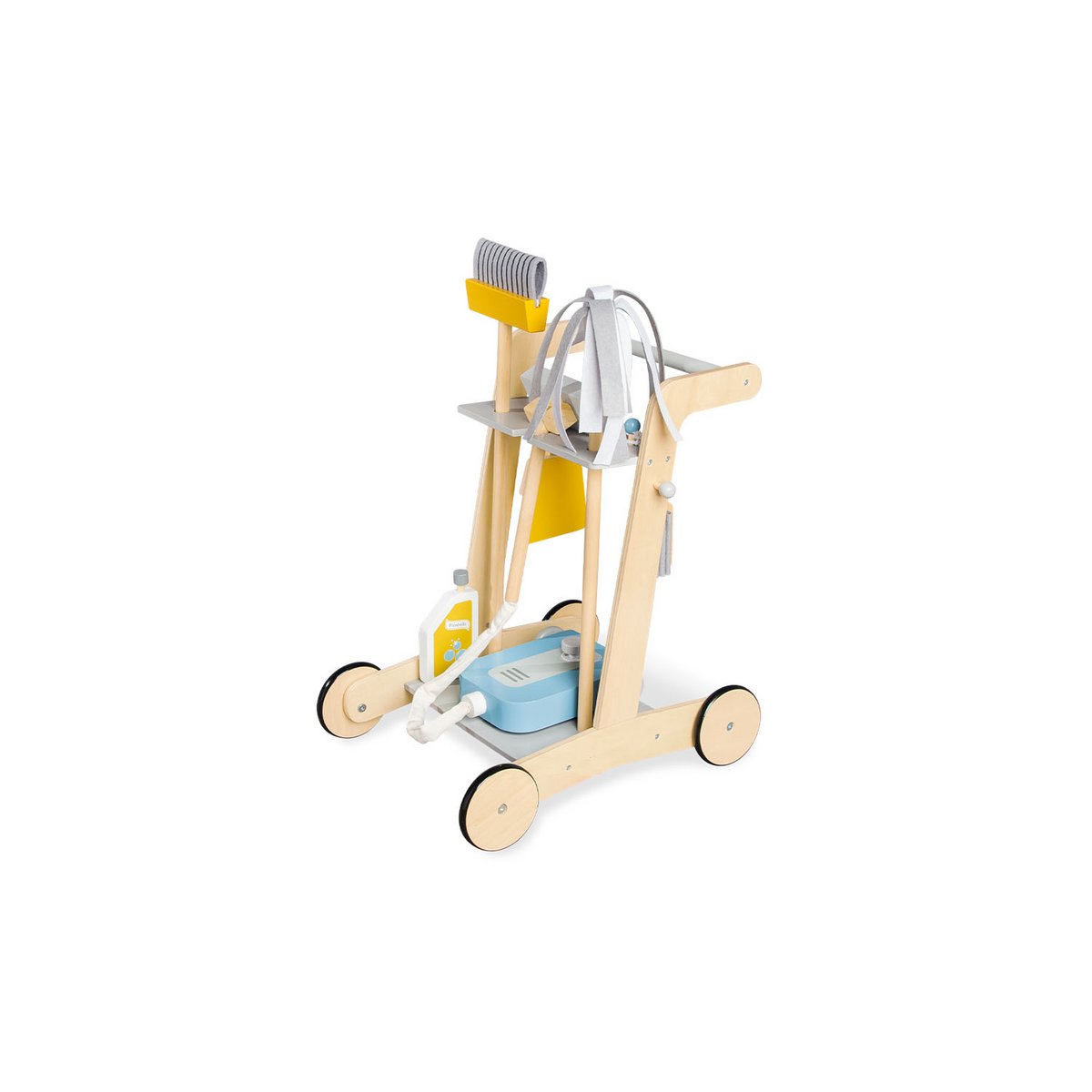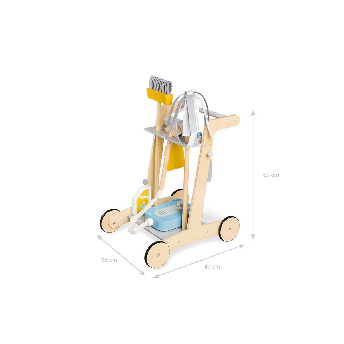 Met deze kleurrijke schoonmaakwagen voor kinderen wordt schoonmaken een feestje! De stevige wagen is gemaakt van deels massief hout en MDF en is helder gelakt voor een vrolijke uitstraling. Dankzij de rubberen houten wielen en stalen assen rijdt hij soepel door elke kamer.