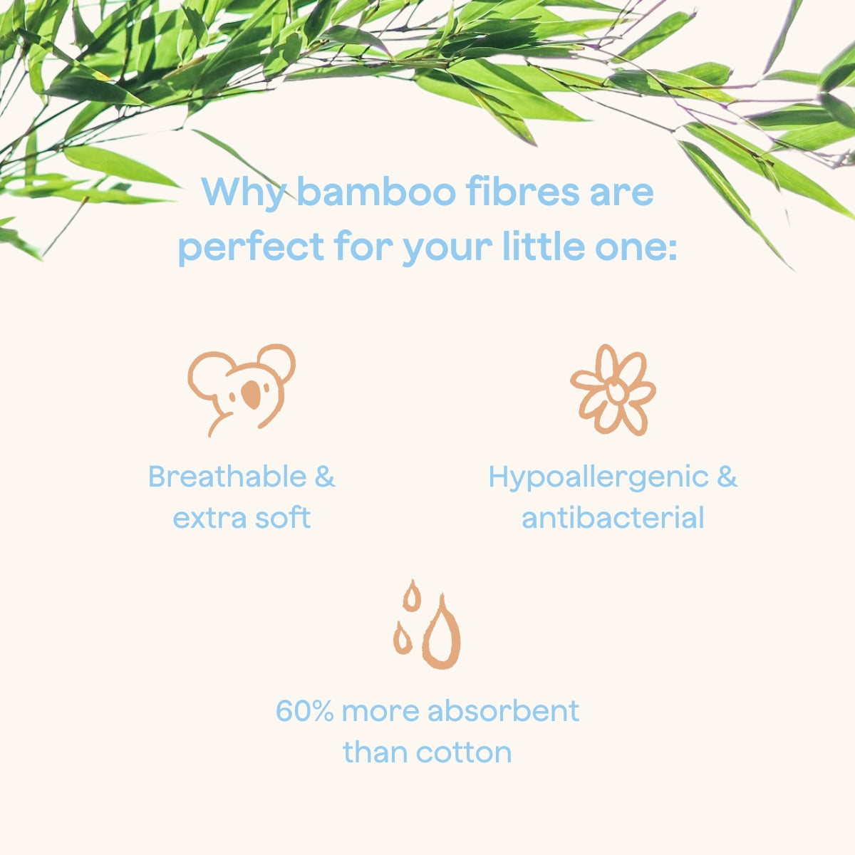 de absorberende bamboebadstof aan de buitenkant houdt morsen netjes binnen de perken,